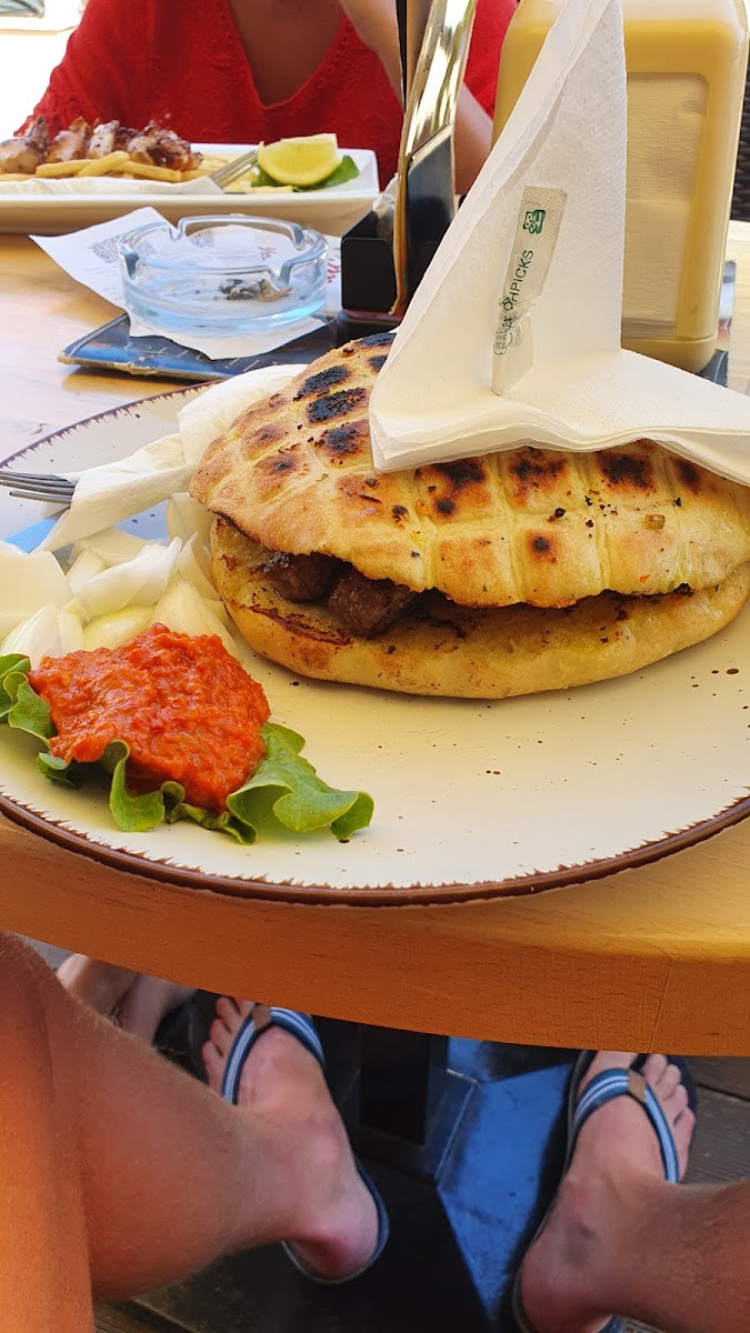 Pizza with seafood was great, but cevapcici not so. Quality and price racio is high. Stuff was very polite and easygoing. It was a pleasure time for us there. It is easy to find and access is from beach side of walking area (impossible to miss). Overall great affordable place for fast and nice bite in domestic atmosphere.