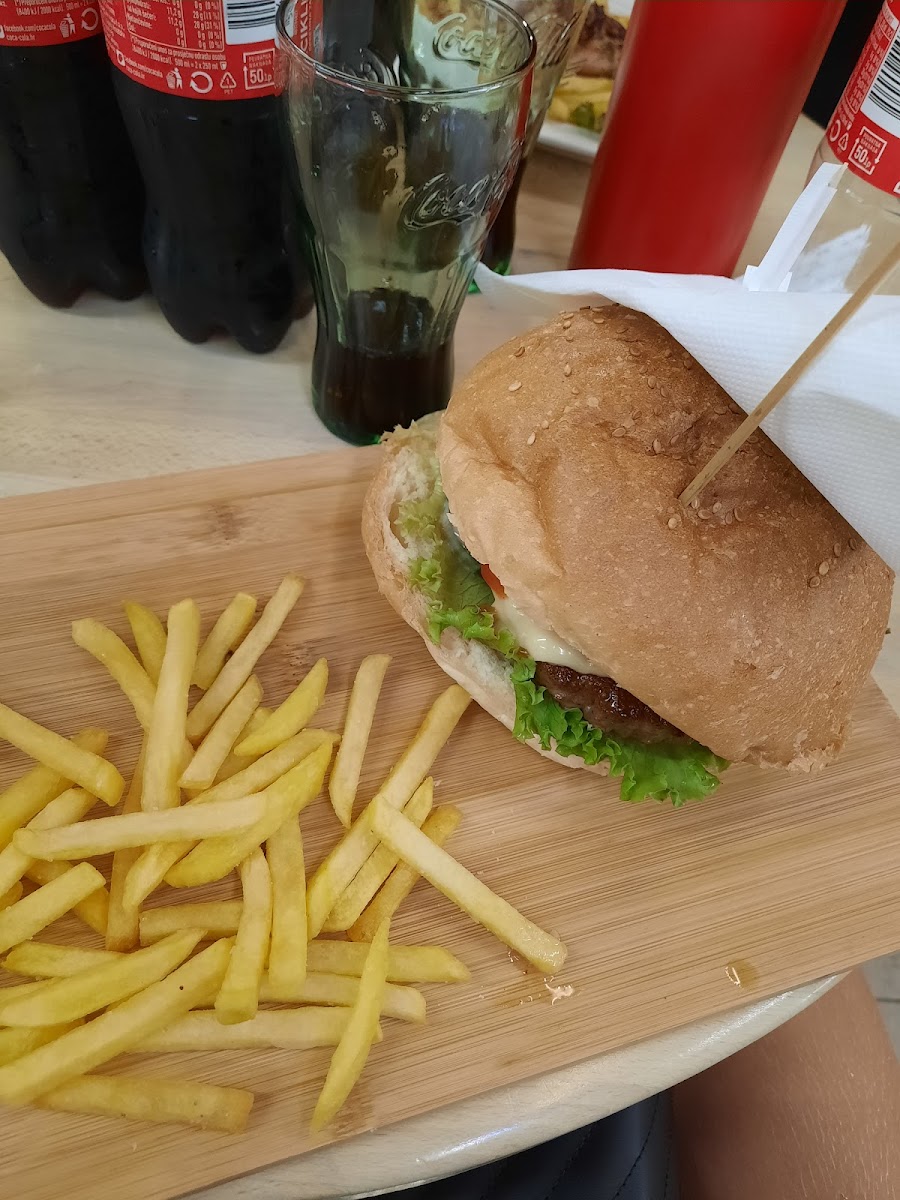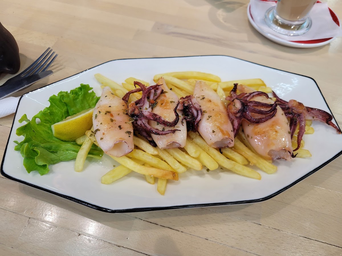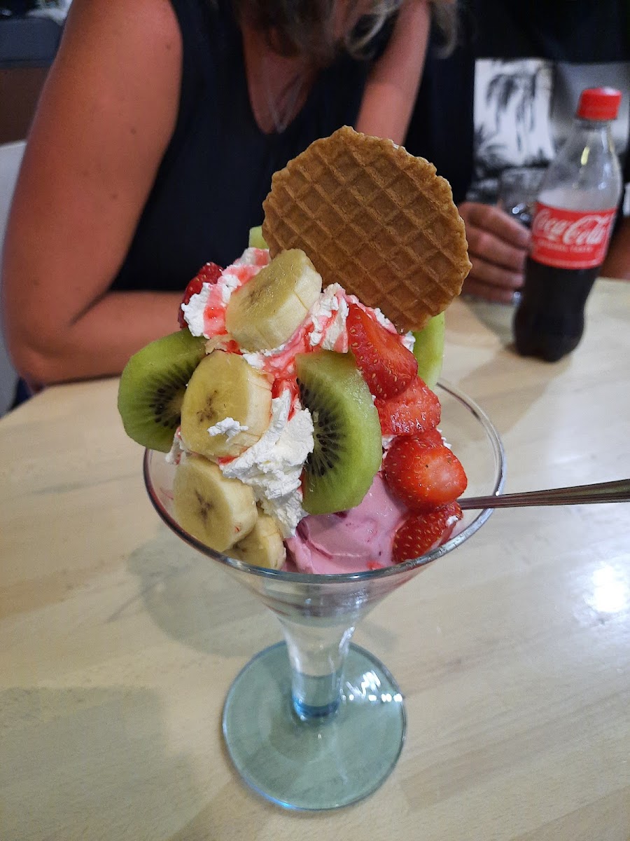 This restaurant is really nice! We ate there many times during our vacation, the burgers were great and so are the calamaris! The tortilla is great too. We also ordered different things for take out, the different pizzas taste great! Especially the edge of them was perfect! Their ice cream and waffles are very tasty aswell! The service is really nice, the staff recognized us after some days and they are very friendly! Wr were treated more like friends than customers and thats great! I would recommend eating there, both dine in and take out! :)